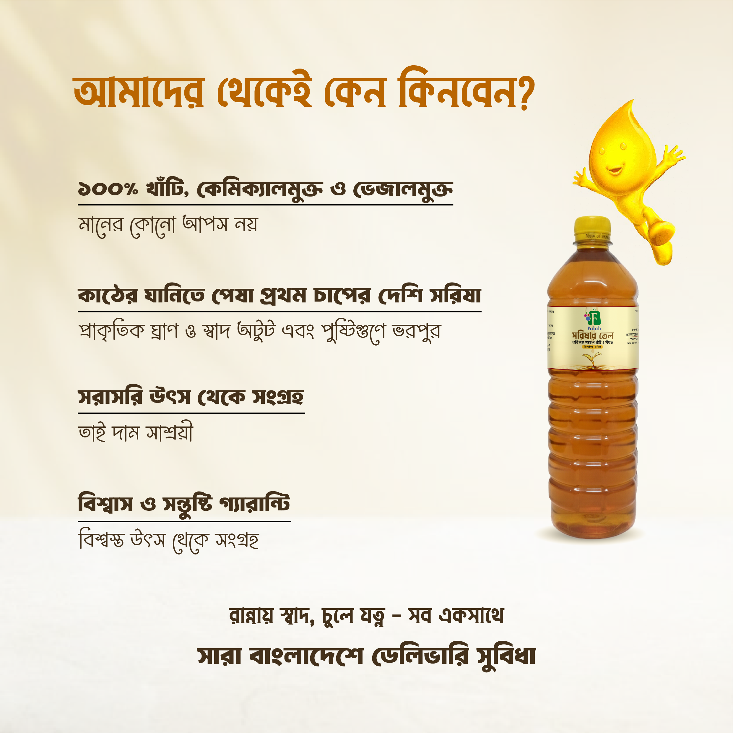 তাহলে বেছে নিন Falah কাঠের ঘানি ভাঙা মাঘী সরিষার তেল (১ লিটার)